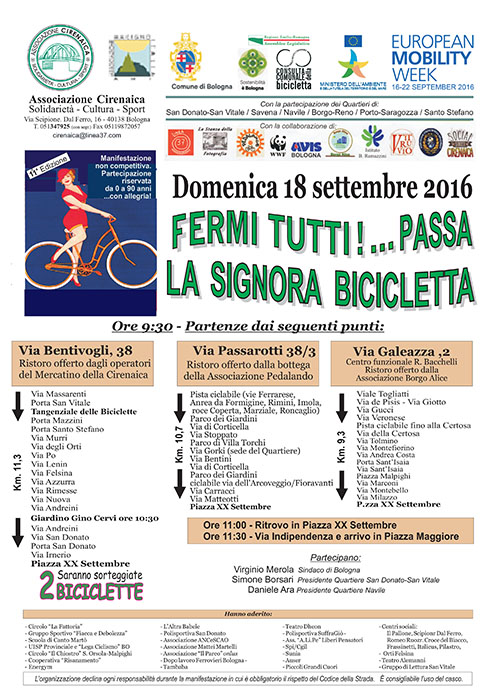 "FERMI TUTTI PASSA LA SIGNORA BICICLETTA" Domenica 18 settembre 9,30