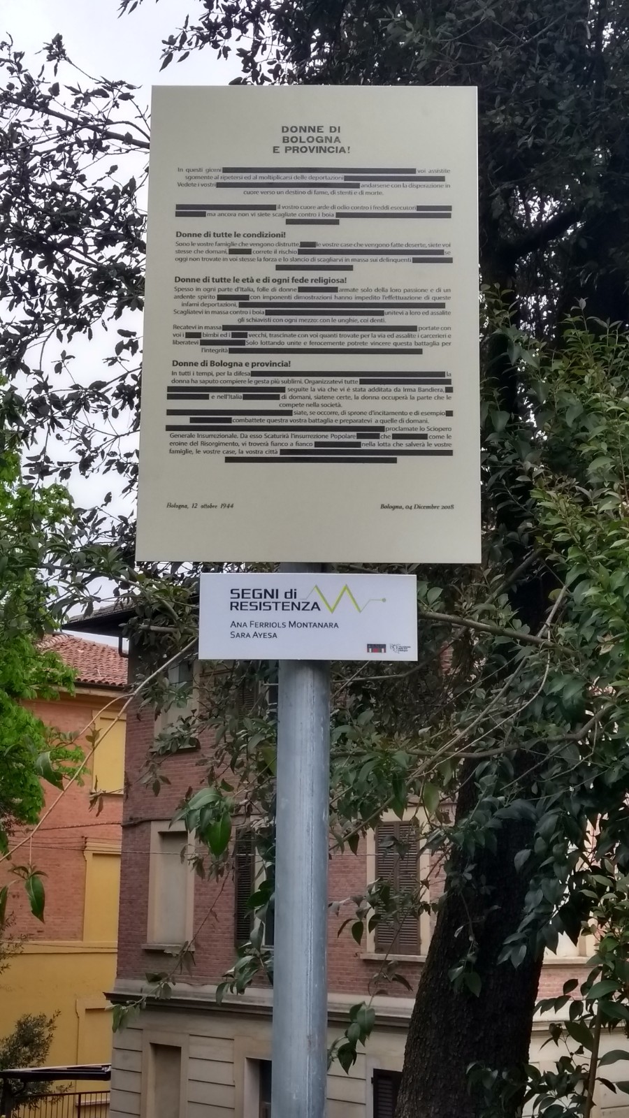 L'ANPI di Bologna, in collaborazione con l'Accademia delle Belle Arti, propone un progetto di valorizzazione sul contributo della stampa clandestina della Resistenza bolognese e la presenza delle donne partigiane. La valorizzazione sarà effettuata attraverso lavori originali di giovani artisti, studenti e studentesse della stessa Accademia, installando in alcune biblioteche di Quartiere, in quella dell’Archiginnasio e in quella Nazionale delle Donne, cartelli segnaletici che richiamino i temi del progetto.