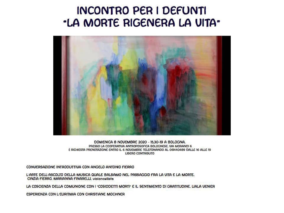 Incontro per i defunti ‘’la morte rigenera la vita’’ Se ritieni che non siano rispettati i contenuti della Carta, Segnala questo contenuto 14 Ottobre 2020Incontro per i defunti ‘’la morte rigenera la vita’’ Domenica 8 novembre 2020 -15:30-19 a Bologna Presso la cooperativa antroposofica Bolognese- via Morandi,6 È richiesta prenotazione il 6 novembre telefonando al 051440409 dalle 16 alle 19libero contributo emailfacebooklinkedintwittergoogle+pinterest CARLO CATALANI Post recenti dal blog GRANDE NOVITA' PER IL 2025! SEMINARIO DI PITTURA SEMINARIO DI PASQUA: 4 Incontri di Architettura Organica Vivente a indirizzo salutogenico CONOSCERE VUOL DIRE ARRICCHIRSI LE ISCRIZIONI 2021/2022 PER LA SCUOLA DEL COLORE SONO SEMPRE APERTE CORSO PROPEDEUTICO in 4 MODULI di Arteterapia della Parola, “VERSO UN NUOVO ESSERE UMANO” “I Miracoli nel vangelo di Giovanni. Guarire dalla Malattia del vivere” IEROFANIE Luci dal Faro del Futuro per la nave sbandata della medicina 1 2 3 4 5 6 7 8 9 … seguente › ultima »