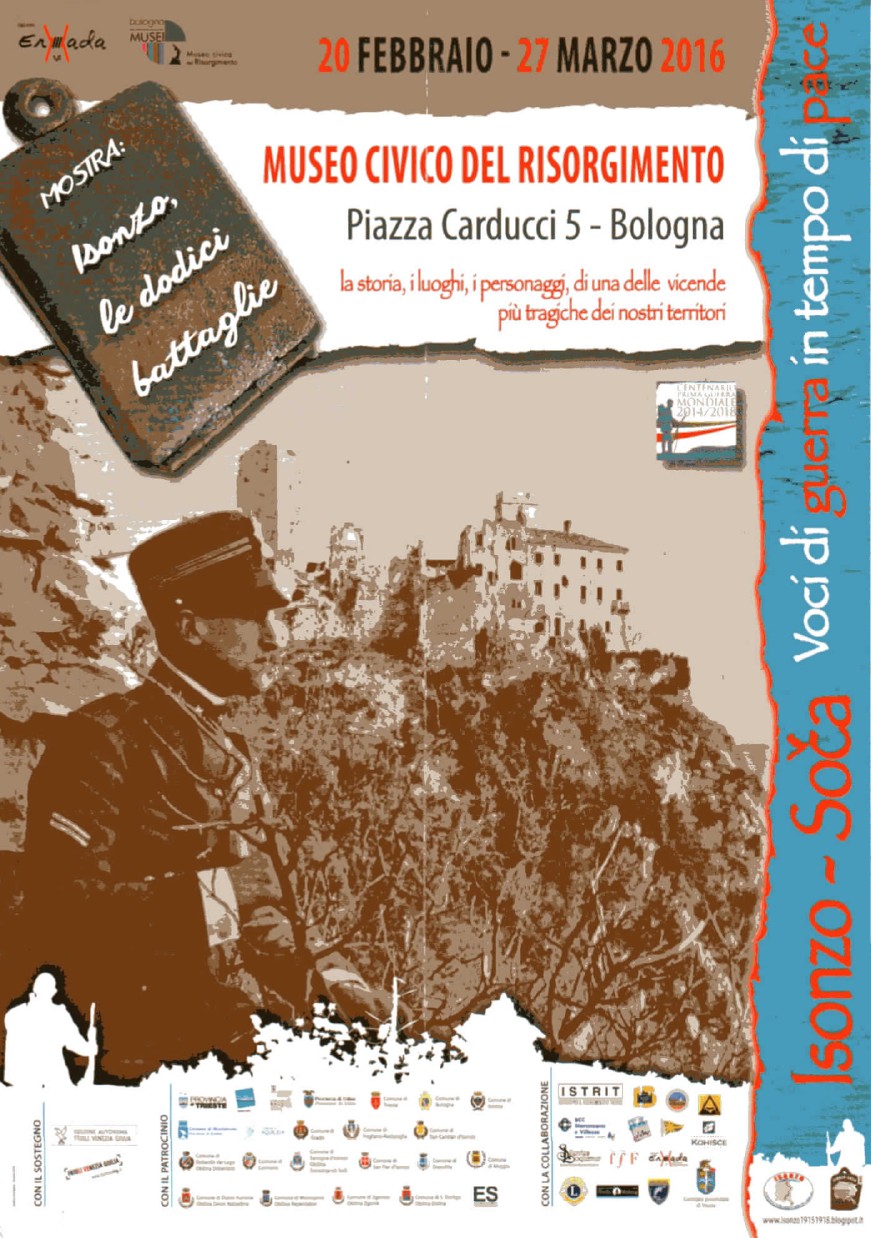 Presso il Museo del Risorgimento situato in Piazza Carducci, 5 a Bologna dal 20 Febbraio al 27 Marzo 2016 è aperta la mostra sulle vicissitudini della Grande Guerra (1915-15) con particolare riferimento alle 12 battaglie dell'Isonzo.