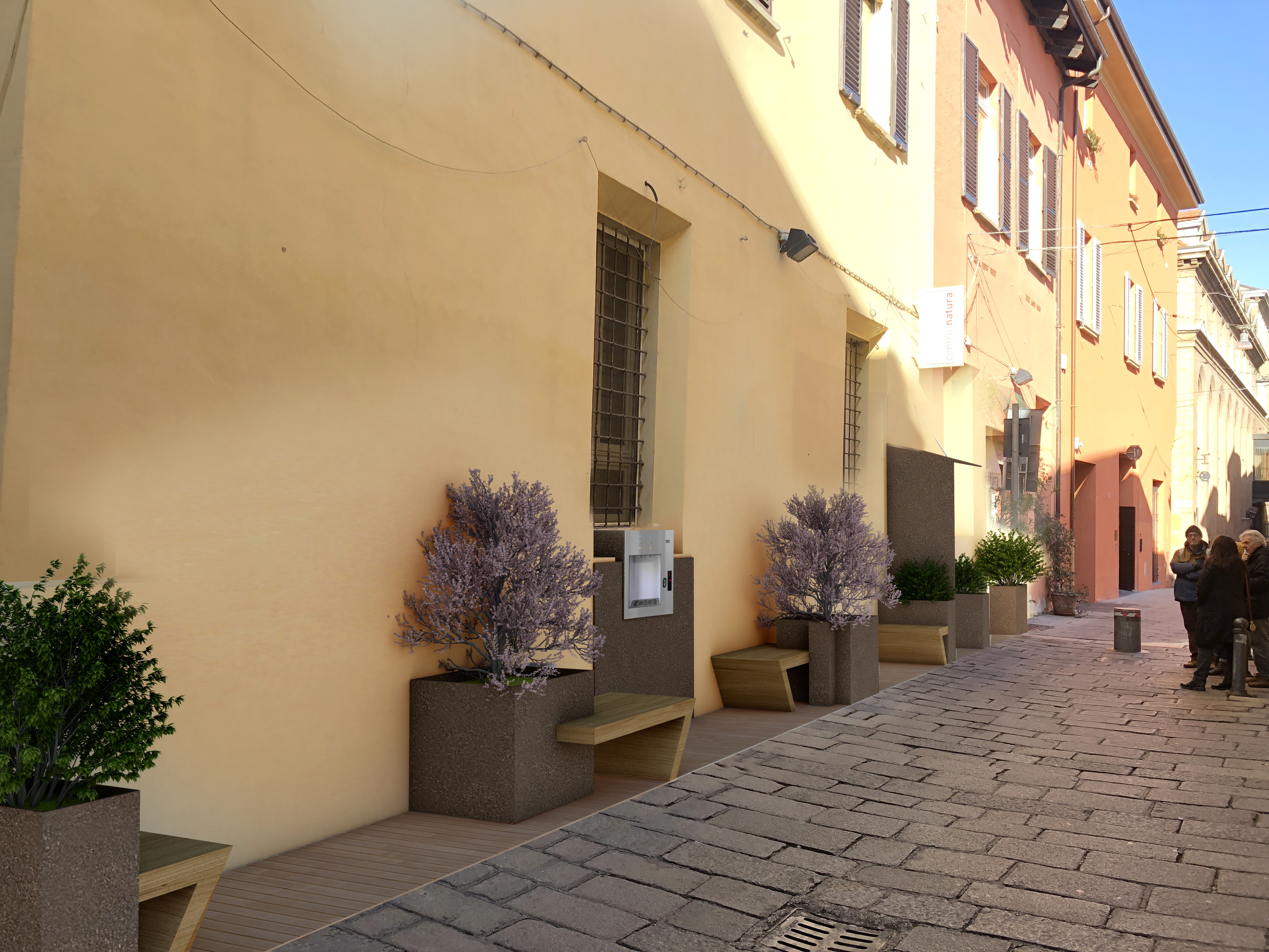 • il posizionamento della casa dell'acqua - elemento con una struttura piacevole e leggera adatta al contesto urbano all'interno della facciata dell'edificio di via degli Albari 4a, senza sporgere sulla strada;