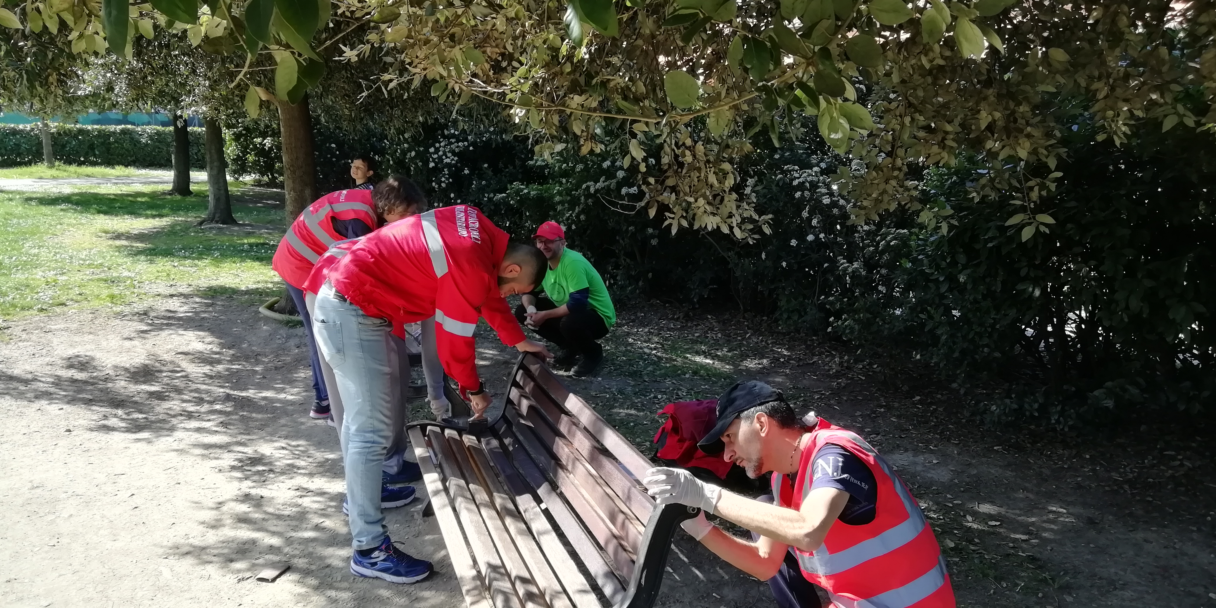 Anche le panchine pian piano stanno recuperando la loro vitalità; diverse squadre di volontari hanno iniziato il lavoro di ripulitura e pittura di queste.