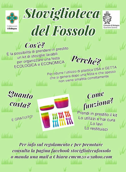 collegato al Patto di Collaborazione: La Stoviglioteca del Fossolo, un’iniziativa per la riduzione dell’uso della plastica – Quartiere Savena