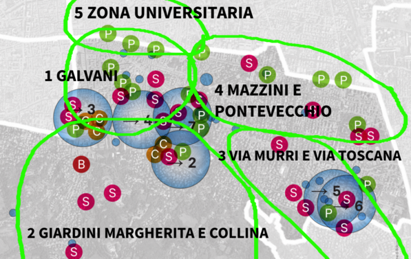 - Migliorare le opportunità di relazioni sociali e di welfare nella parte sud-orientale del centro storico: dai soggetti attivi sul territorio e dai cittadini arrivano richieste di spazi per associazioni e cittadini, aree verdi e orti, e di interventi per favorire la socializzazione nello spazio pubblico, anche tramite un miglioramento delle sue dotazioni e della cura degli spazi stessi. Con l’attuazione della riforma dei quartieri nel prossimo mandato è possibile che nelle sedi di via Santo Stefano e di vicolo Bolognetti si possano individuare spazi per attività associative.