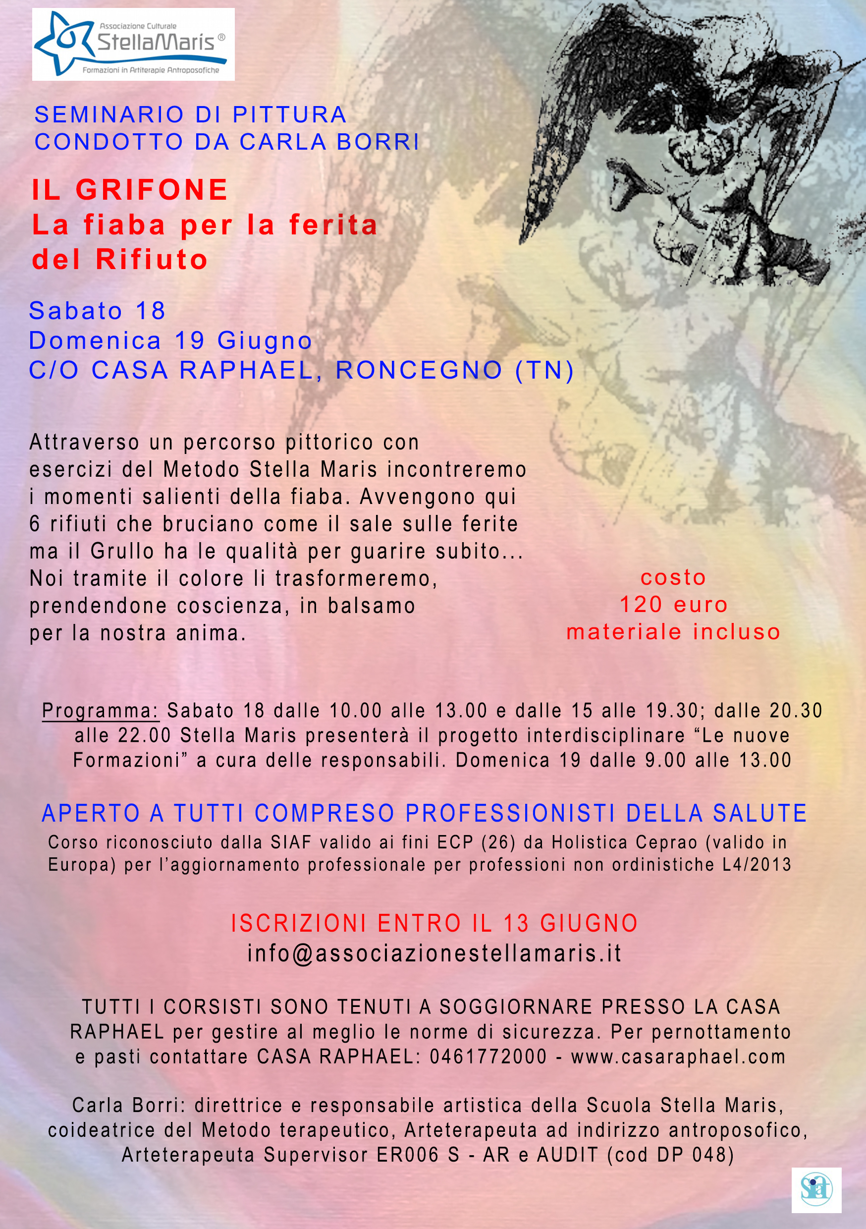 Attraverso un percorso pittorico con esercizi del Metodo Stella Maris incontreremo i momenti salienti della fiaba. Avvengono qui 6 rifiuti che bruciano come il sale sulle ferite ma nella fiaba il Grullo ha le qualità per guarire subito…