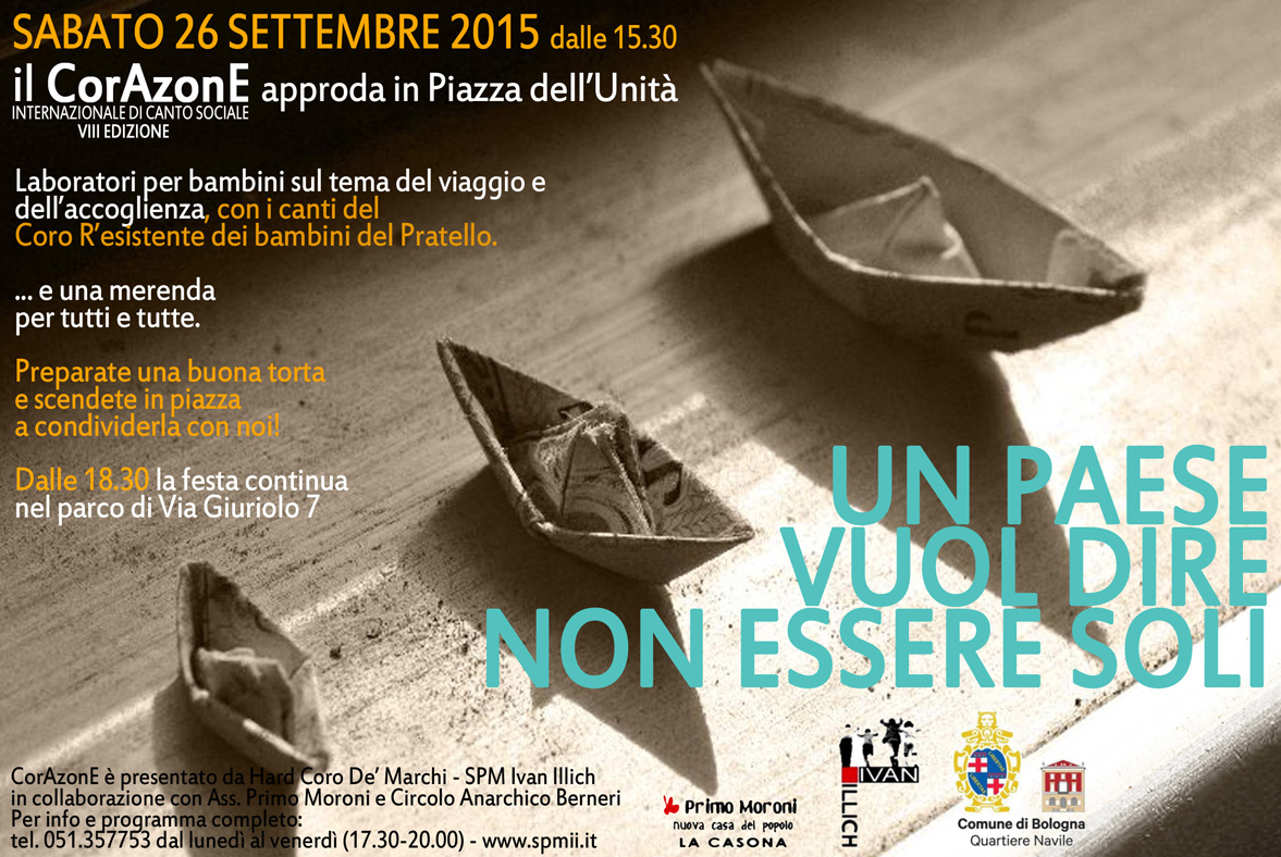 Merenda condivisa per bambini d'ogni età e laboratori creativi sul tema del Viaggio a cura del comitato “Unità nella Piazza”, con la partecipazione del Coro R'esistente dei Bambini del Pratello