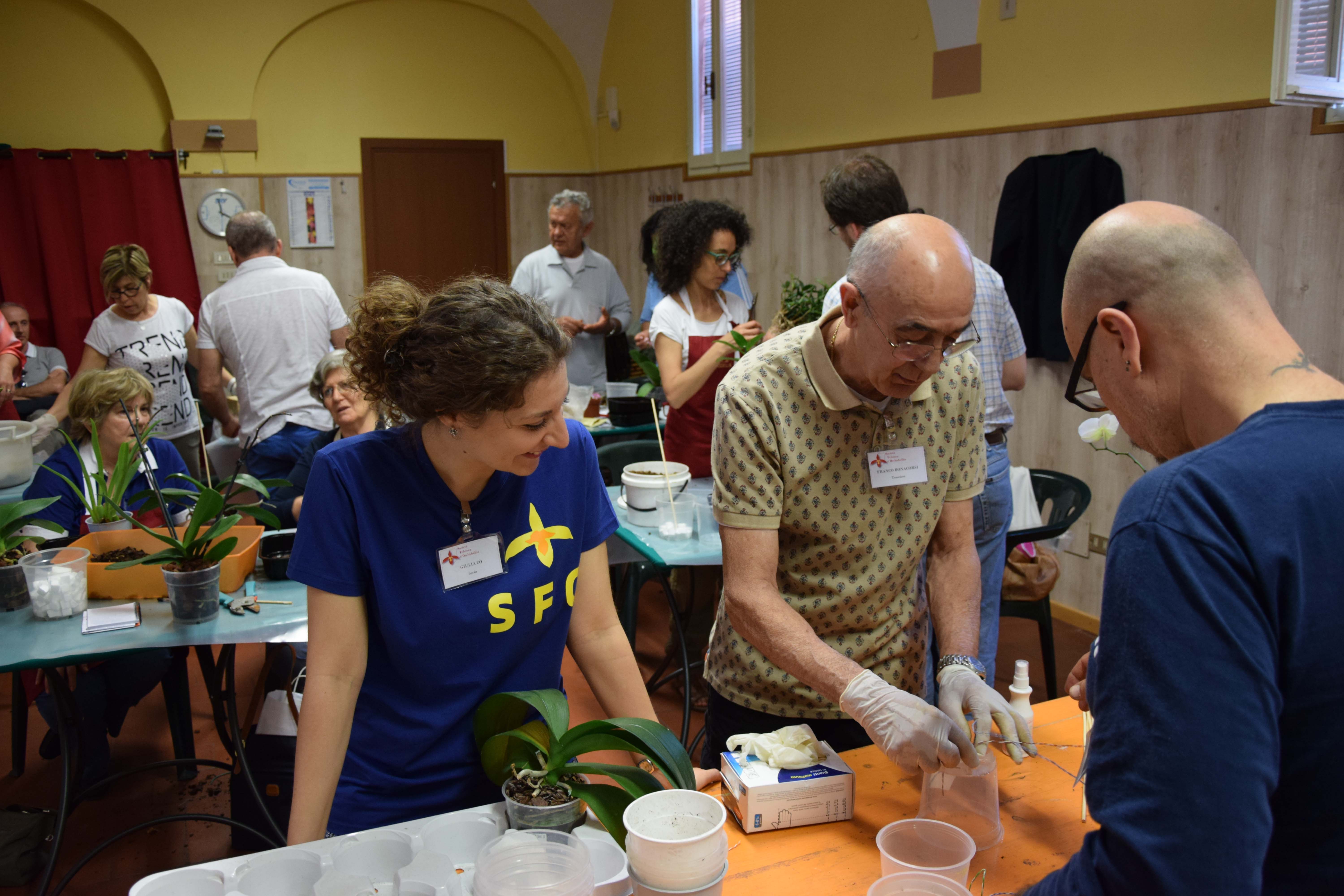 Contrariamente a quanto si pensa, nessuno di noi è propriamente un botanico. La cosa strana di questa passione è che è “lei” a guidare e a farci decidere cosa e come studiare queste piante. C'è chi ha l’inclinazione a studiare i loro aspetti biologici e biochimici, c’è chi invece si concentra sulla semplice coltivazione delle piante che gli regalano, c’è chi addirittura si specializza su un singolo genere di orchidee. Il non-plus-ultra (per il momento) è un nostro socio, che ha convertito un’intera stanza a “serra” per le orchidee con umidificatori e illuminazione artificiale; noi la chiamiamo per scherzo “stanzaserra”. In generale, il comune denominatore è cercare di coltivare al meglio queste piante in base alle nostre possibilità, sia in serra, sia in casa. Inoltre, ognuno di noi ha delle storie personali molto diverse e quasi tutti siamo diventati orchidofili per caso e tutti abbiamo fatto all’inizio strage di orchidee per imparare a coltivarle, fa parte del cursus honorum.