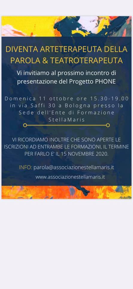 Domenica 11 ottobre ore 15.30-19.00 in via Saffi 30 a Bologna presso la Sede dell’Ente di Formazione StellaMaris